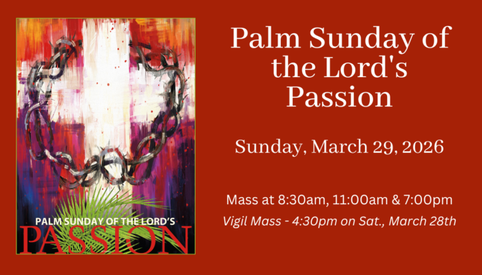 Our celebration of Holy Week begins on PALM SUNDAY (March 29th). On this Sunday, we remember and make present the triumphal entrance of Jesus into Jerusalem to begin his final week and initiate his Passion. All four Gospels recount this triumphant entry that Sunday Morning so long ago, but made present to us today. As you receive your palms, consider that you are part of that … [Read More...]